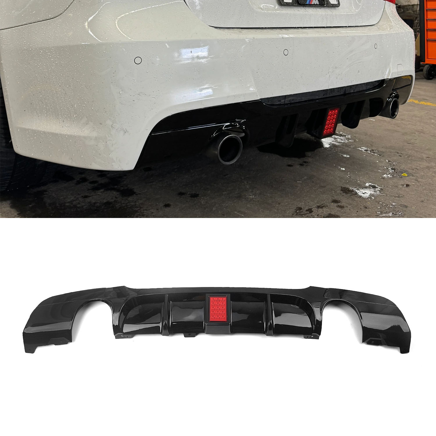 Läikiv must tagumise stange diffuusor (1×1) LED BMW E90, E91